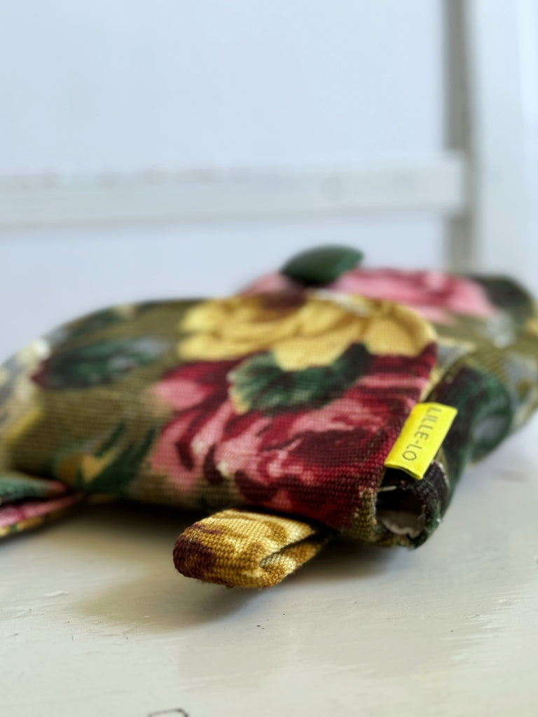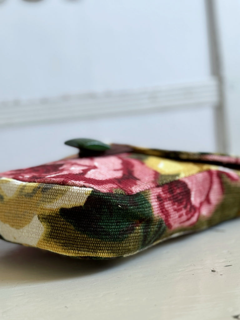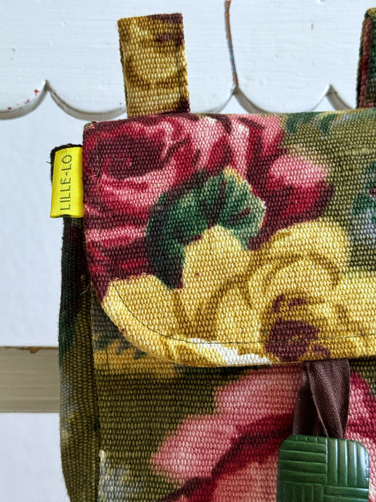 Denna väska är sydd av ett kraftigt tyg med vackra rosor på. Knapp och öggla kan skilja sig från bilden. Hör av dig till mig om du vill veta exakt vilken det är på just din.
