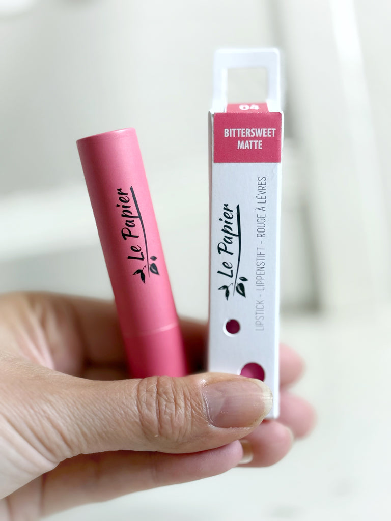 Det här läppstiftet har en lättburen varm rosa nyans som passar de flesta. Läppstiftet är matt och är helt ekologiskt. Dessutom så är det helt utan plast i förpackningen. Det är en hylsa av papper. Härlig konsistensen på läppstiftet och det är lätt att applicera snyggt.
