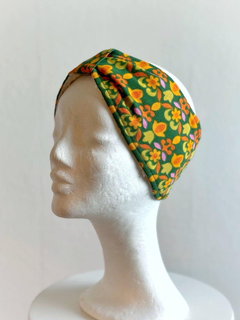Tillverkade av återbrukade vintagetyger eller andra tyger som blivit över i min och andras produktion. Alla pannband är fodrade med supermysig och varm ekologisk bomullsteddy, gots-certifierad.