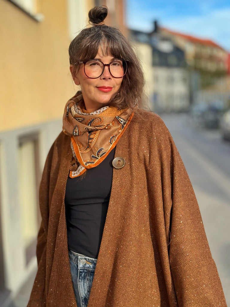 Ett ytterplagg i samma modell som mina sjok, men med ärm och i varmare material. Perfekt över alla typer av kläder – till vardags eller fest.