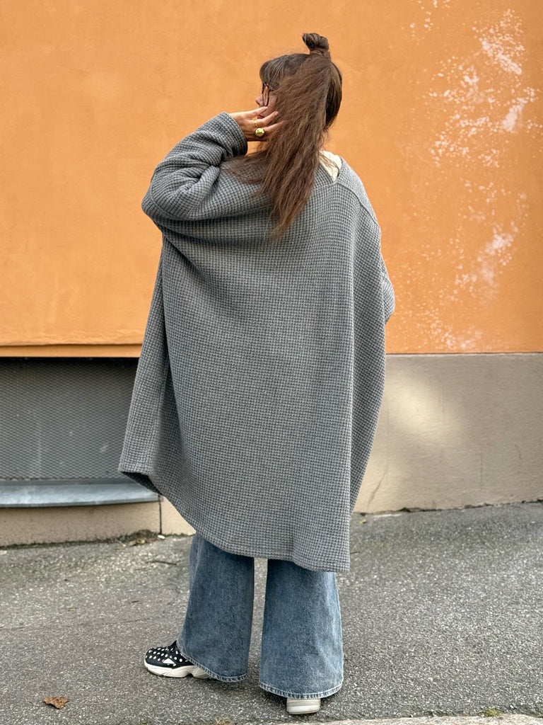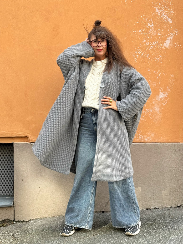 Ett ytterplagg i samma modell som mina sjok, men med ärm och i varmare material. Perfekt över alla typer av kläder – till vardags eller fest.