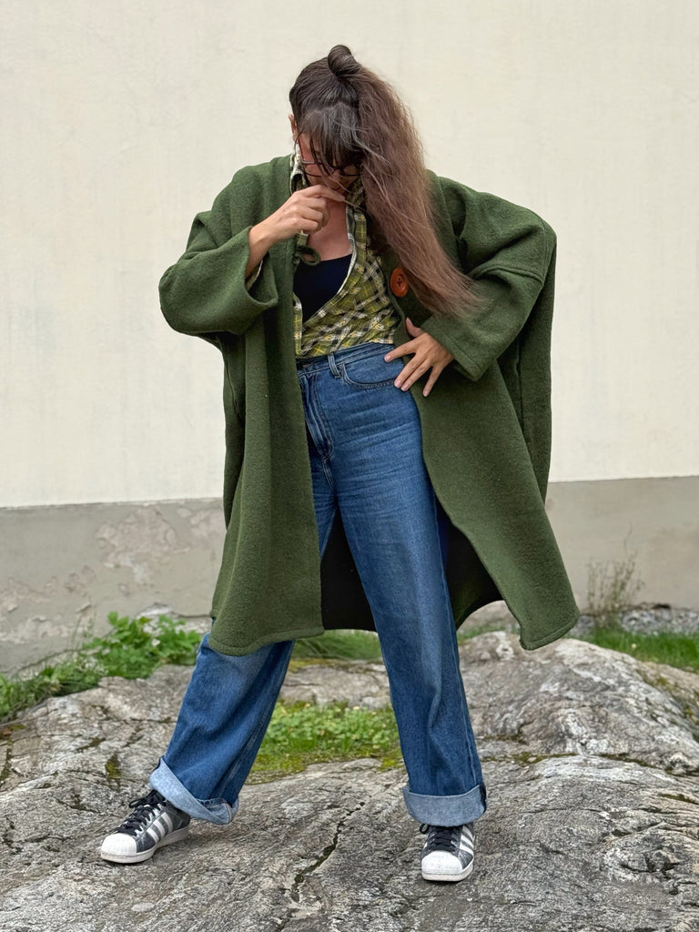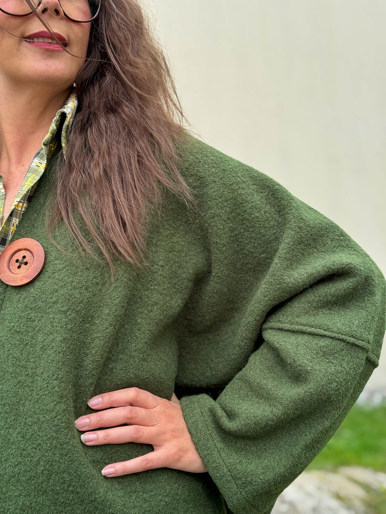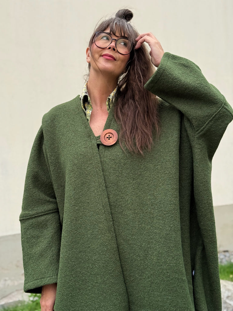 Ett ytterplagg i samma modell som mina sjok, men med ärm och i varmare material. Perfekt över alla typer av kläder – till vardags eller fest.