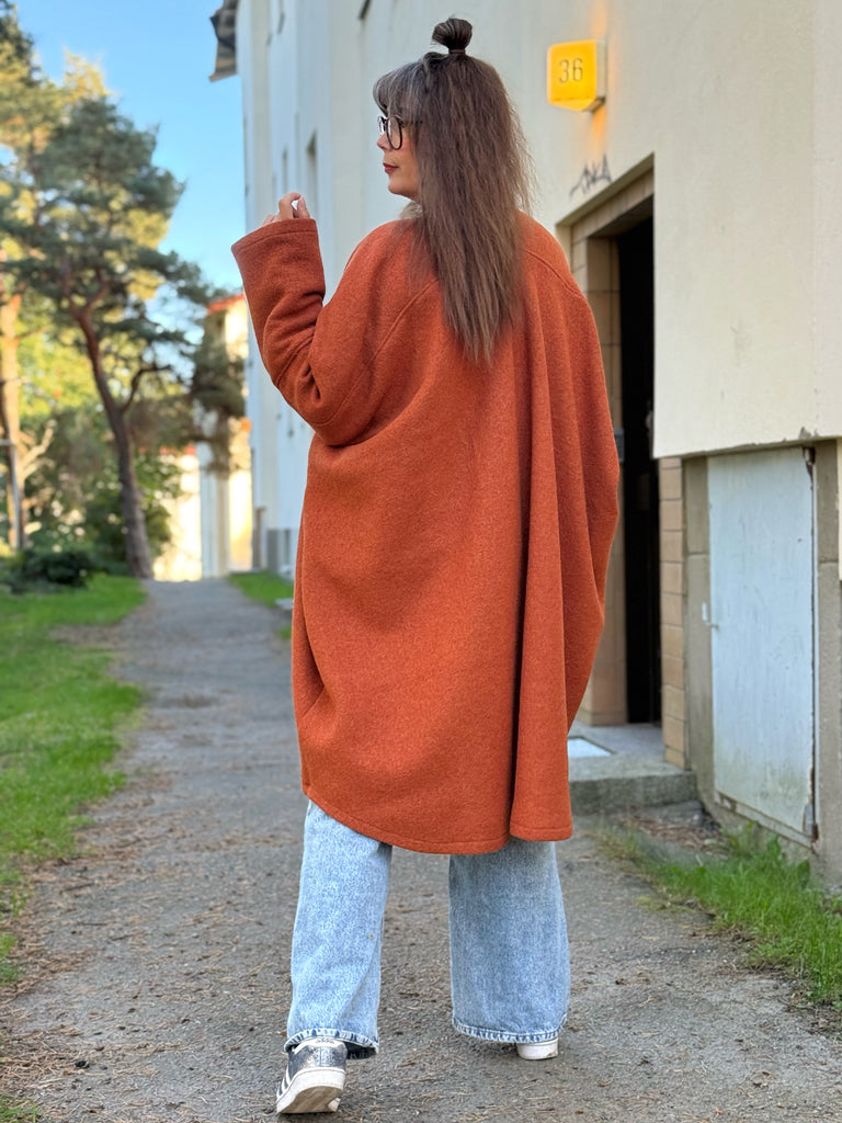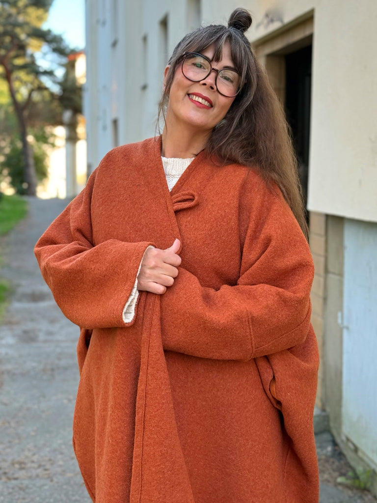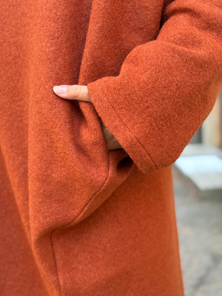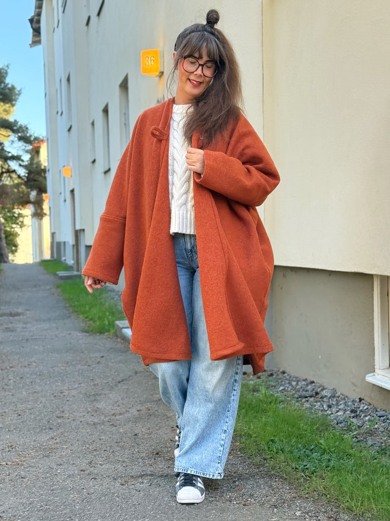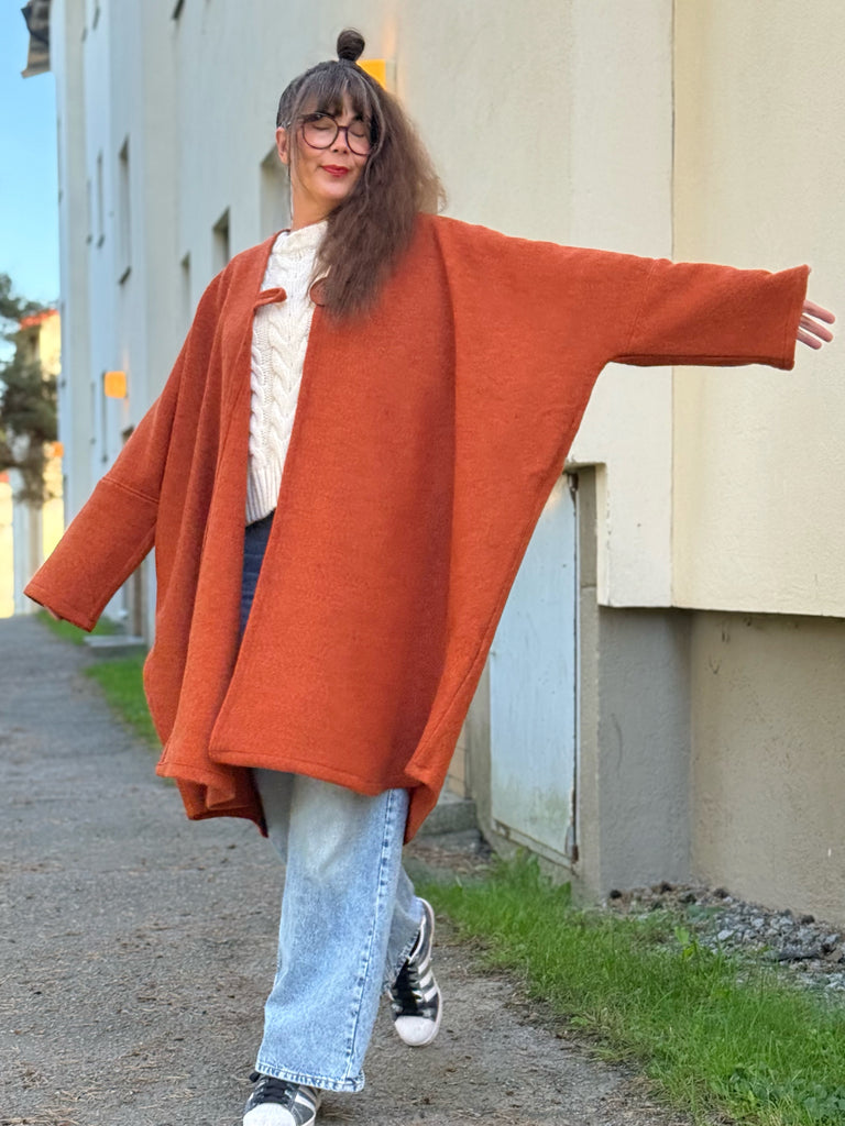 Kappan är i min favoritfärg. En mustig tegelfärgad medeltjock ull.
