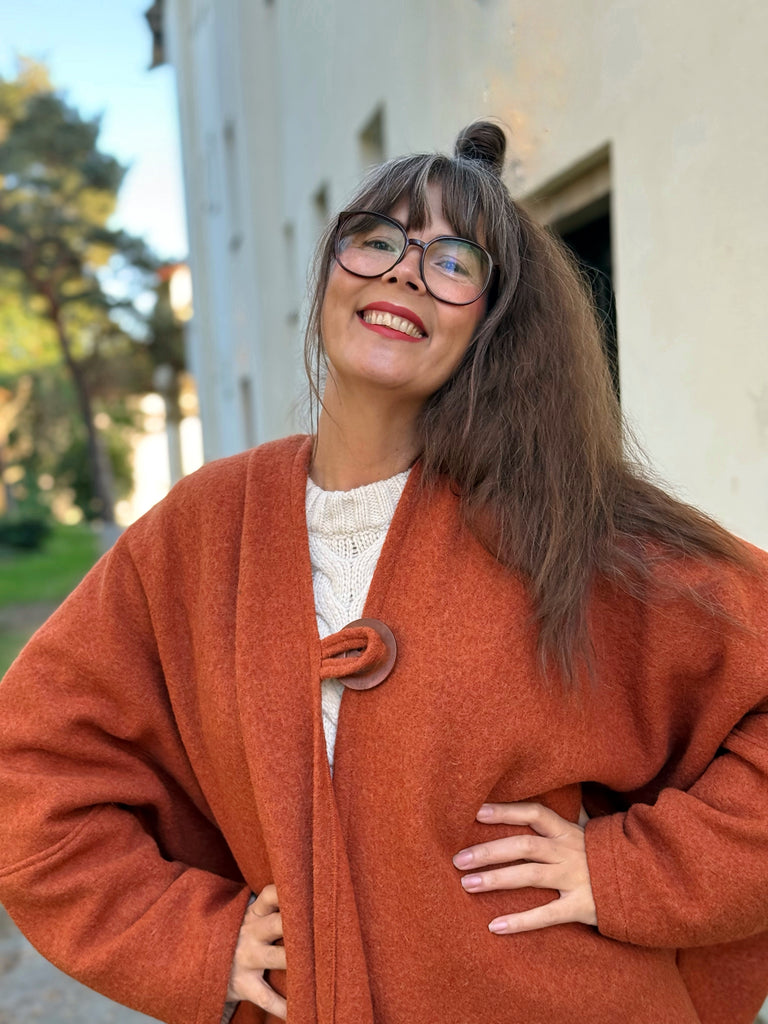 Ett ytterplagg i samma modell som mina sjok, men med ärm och i varmare material. Perfekt över alla typer av kläder – till vardags eller fest.