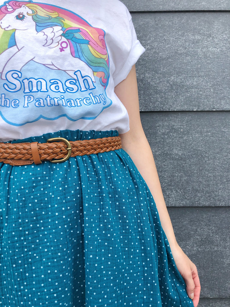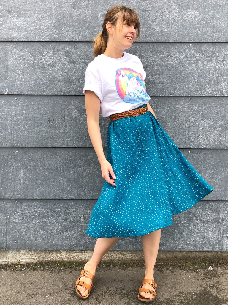 En kjol som passar vid alla tillfällen och är luftig och sval. Jag gillar att sätta ett skärp i midjan när den följer med mig på festligheter. En väldigt lättburen kjol som går att variera väldans mycket.