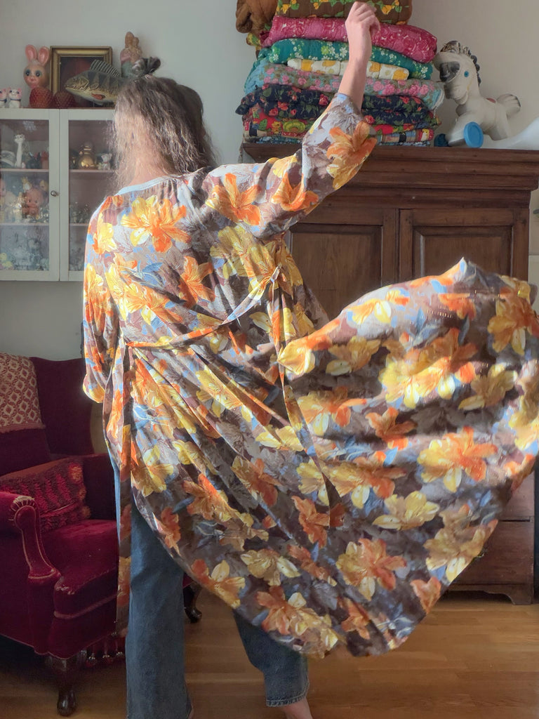 Du kan bära den knäppt som klänning, med eller utan sitt skärp. Funkar lika bra på en tjusig fest som på stranden. Supersnygg att knäppa upp helt och ha över byxor, kjol eller klänning. Använd den som klänning eller kaftan, till vardags eller fest. Passar precis lika bra vid alla tillfällen.