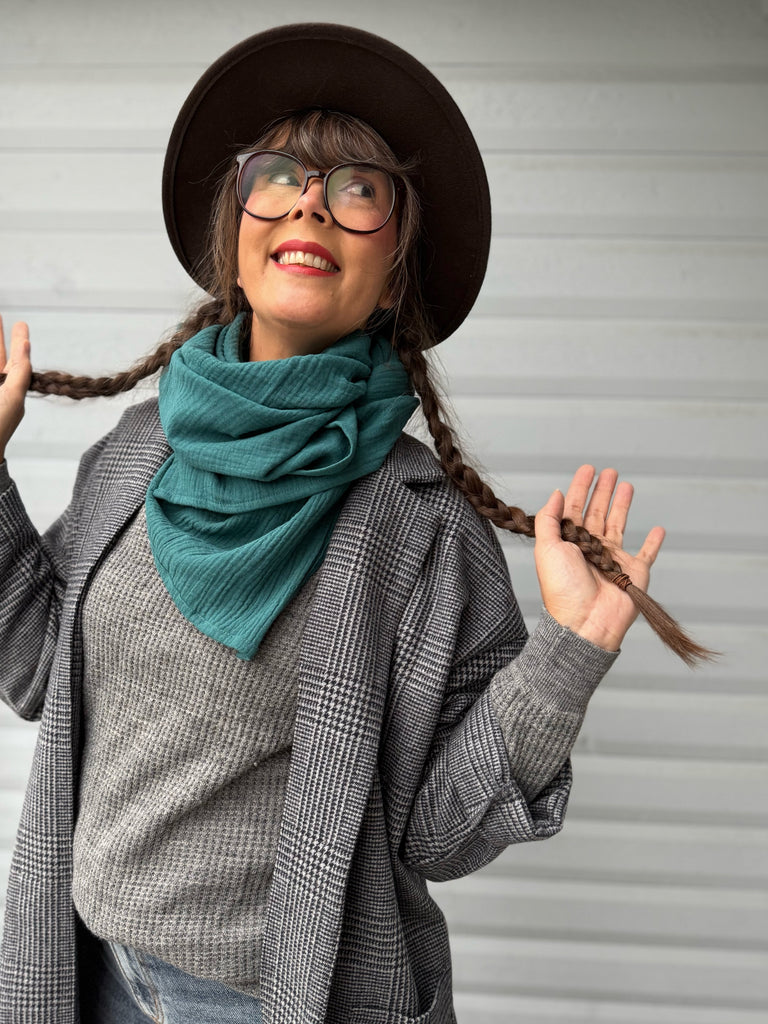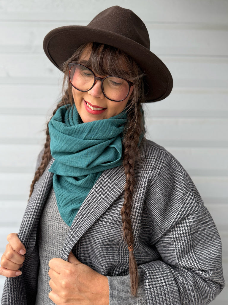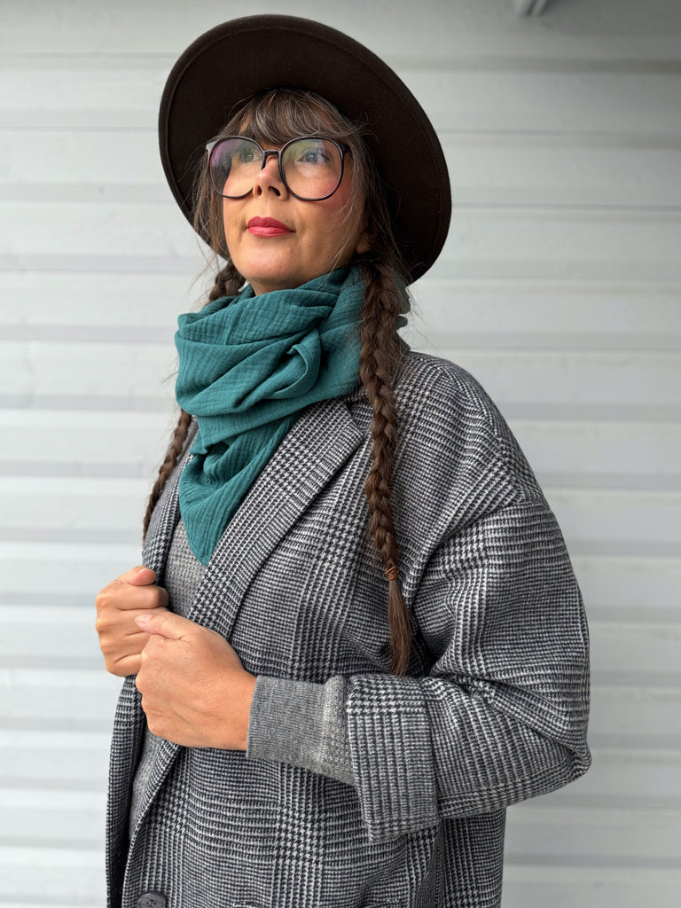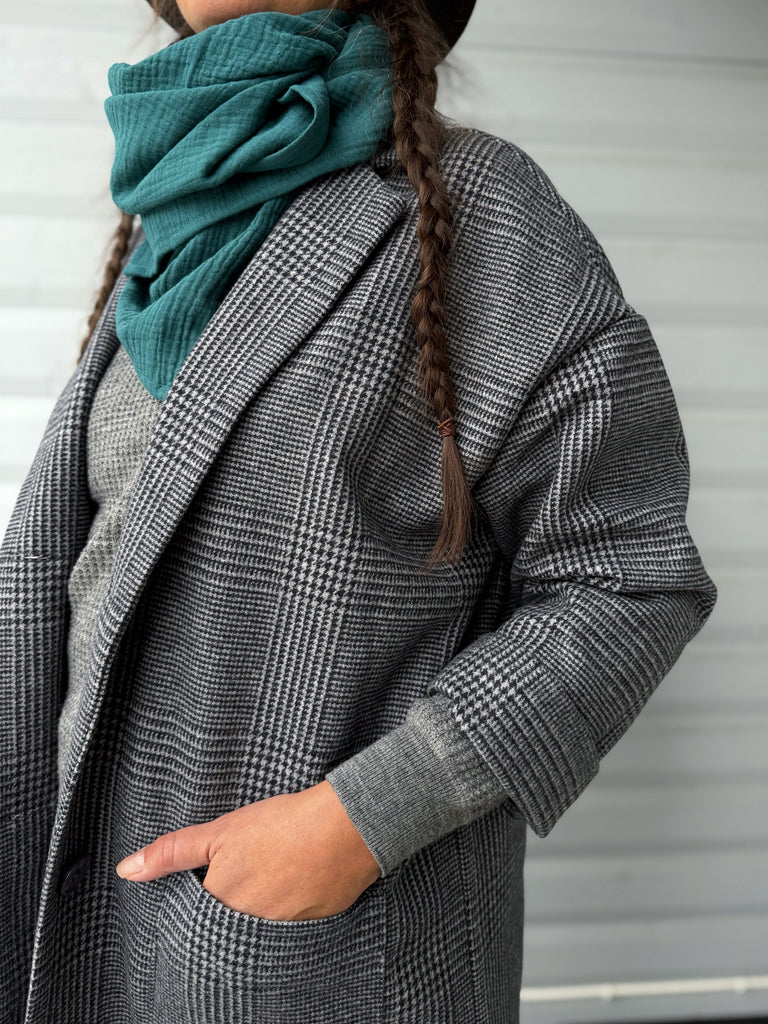 Otrologt stilig ull i Glenn check mönster i svart och grått. Tyget är deadstock. Du kan knäppa den med två större knappar, de kan dock skilja sig från bilden då de flesta knappar är loppisfynd.