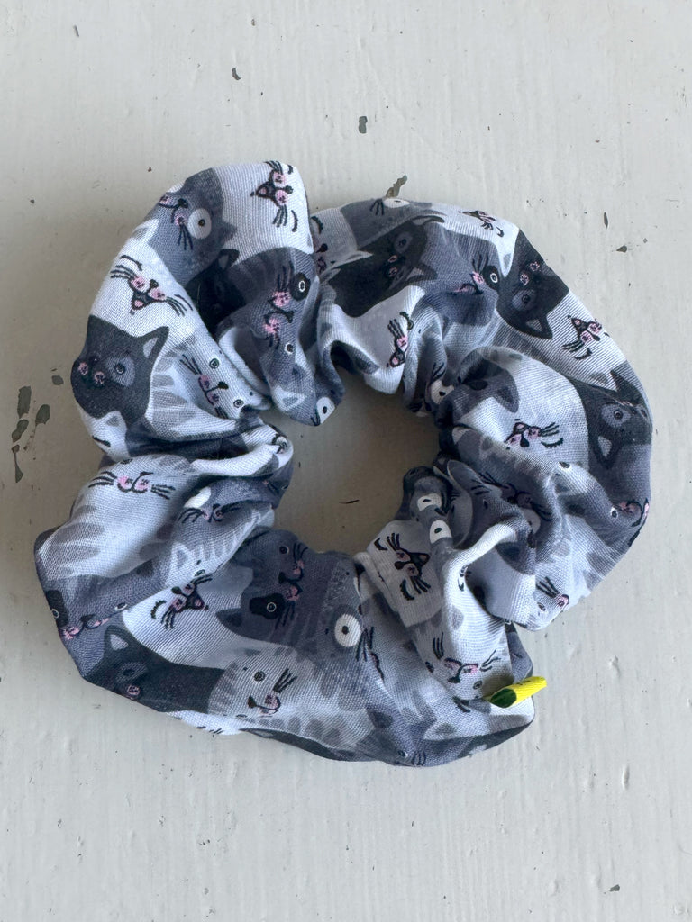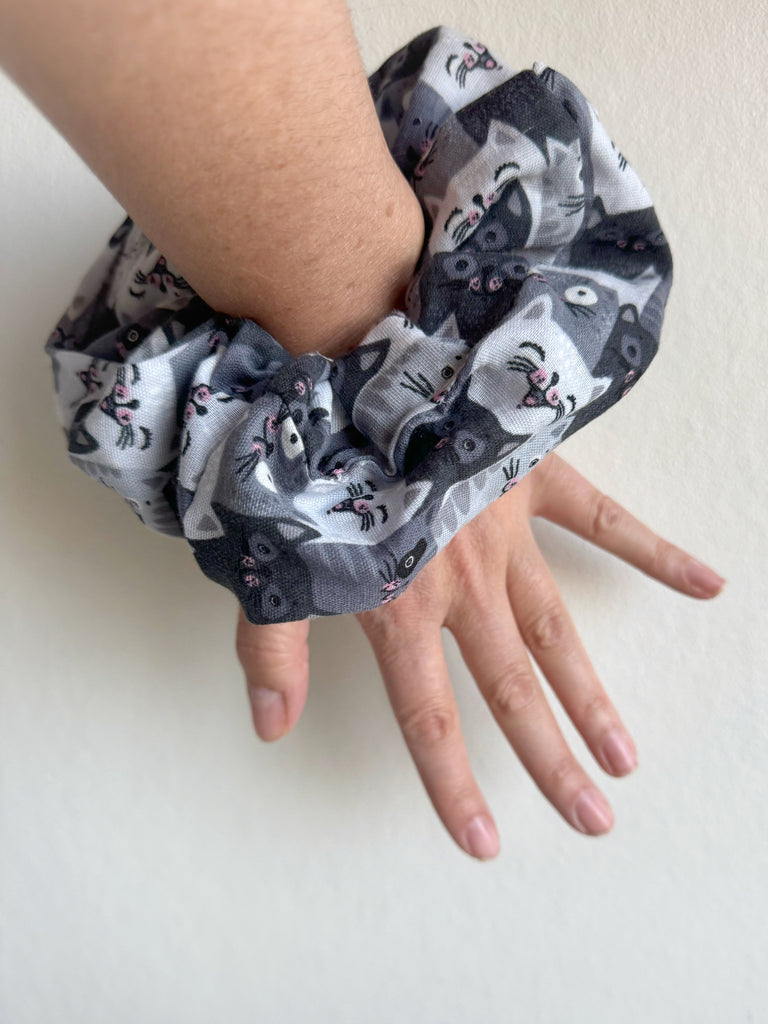 Just denna tofs är lagom stor och fluffig. Blandade grå katter på bomullsmuslin. Tyget har blivit över efter produktion av mina plagg.