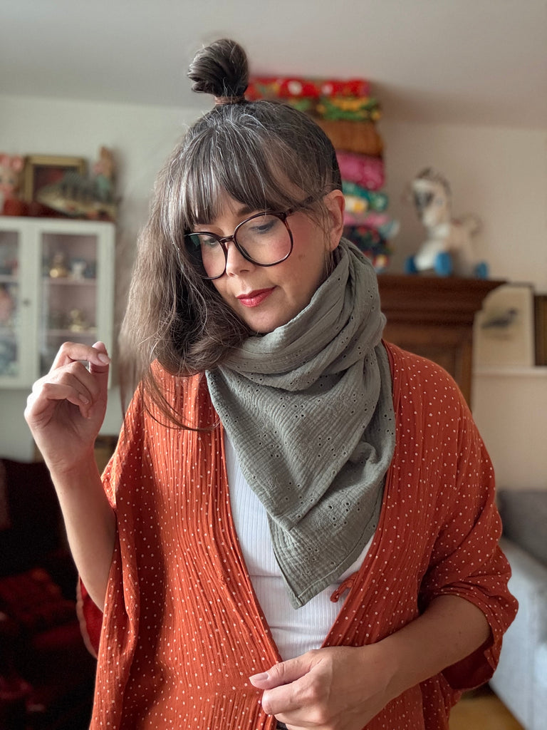 Själv gillar jag bäst att bara sjalen knuten fluffigt runt halsen, som ni ser på bilden.