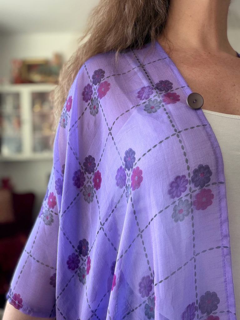 Sjok / kaftan av återbrukat tyg i lila nyanser