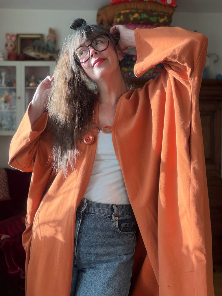 Ett löst och rymligt plagg som funkar lika bra hemma som till fest eller bara som extra lager. Modellen är densamma som mina andra sjok, men med ärm, vilket gör det användbart året runt. Ett gos-sjok är inget du bara använder ibland, det är något du lever i.