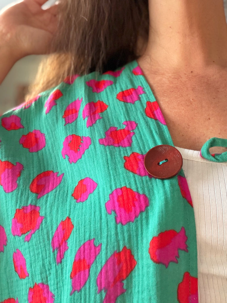 Sjok / kaftan i grönt & cerise leopardmönster