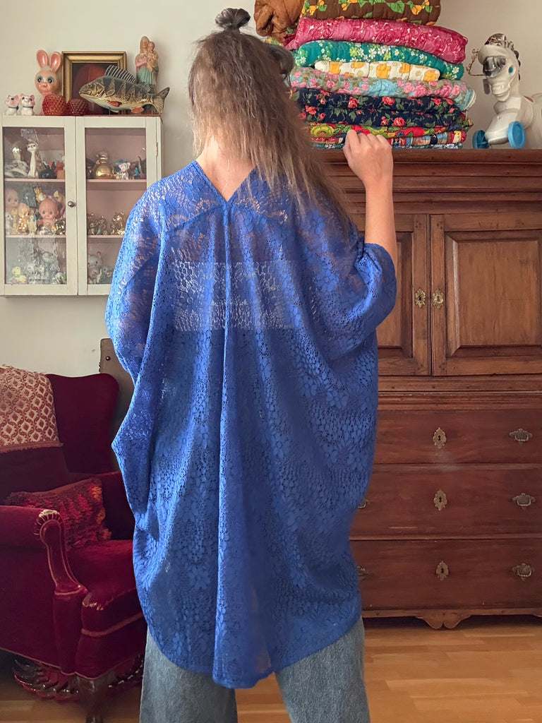 Ett oerhört vackert och lite extra festligt sjok i ett spetstyg. Mörkblått med ett sirligt vackert mönster.