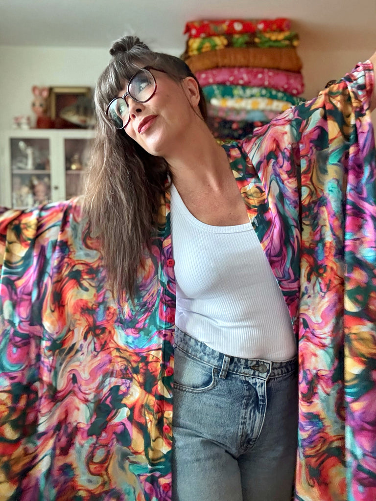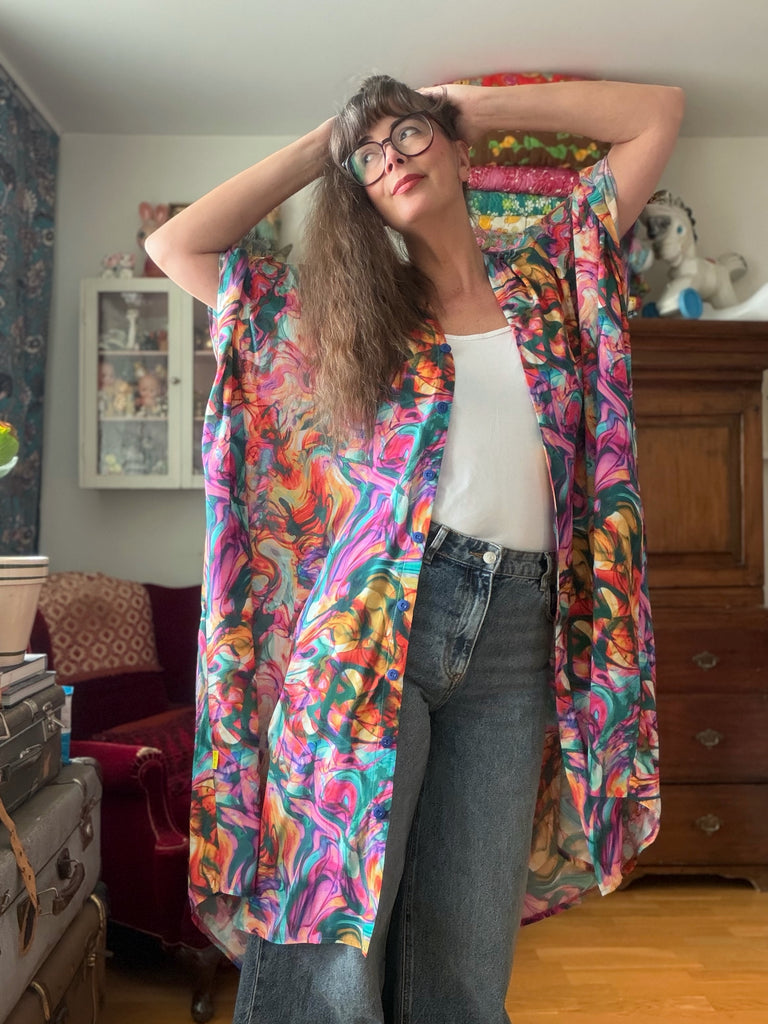 Sjok / kaftan med knappar marmorerat