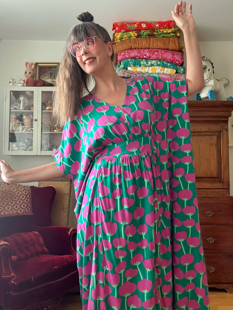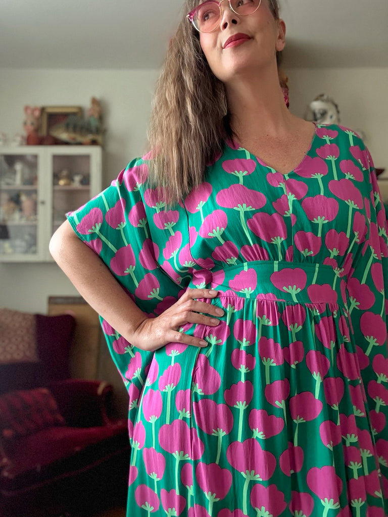 Storleken bestäms framför allt av din storlek på själva bysten/kupstorlek – klänningen är annars mycket flexibel.
