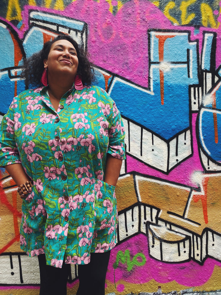 Städrocken är ett rymligt plagg och designat för att du ska ha ca 30-40 cm i rörelsevidd. Jag på bilden är 177 cm lång och bär nästan alltid M och även det i mina Lille-Lo kläder.