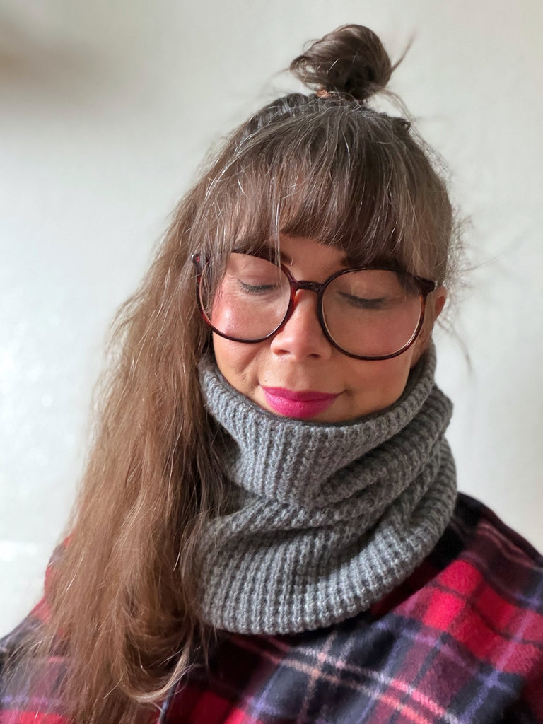 Tubsjal i grå stickad ull